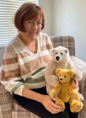 Awarded by Sebastian Marquardt and Glenn and Irene Jackman of Hugglets for 24 years of making many, many bears, attending fairs, and 16 years of running workshops so spreading both enthusiasm and skill! This was most unexpected as we had never thought of ourselves as having made a valuable contribution to the wonderful world of teddy bears!